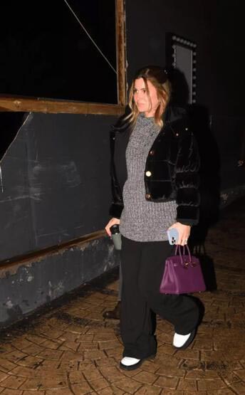 İlk bebeğine hamile olan ve karnı belirginleşen Nazlı Sabancı, çıkışta muhabirleri görünce duraksadı.