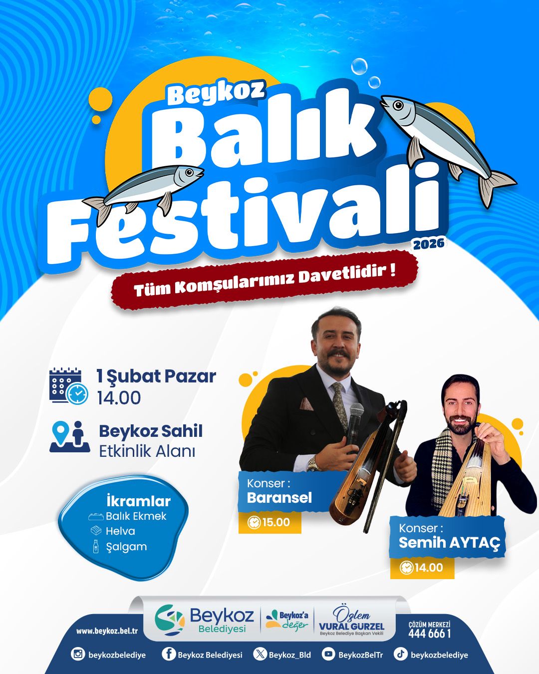 “Beykoz’umuzun güzel sahilinde, paylaşmanın ve dayanışmanın en güzel örneklerinden birini daha yaşayacağız. Hemşehrilerimizle aynı sofrada buluşacağımız, müzikle ve muhabbetle ısınacağımız Balık Festivali’ne tüm Beykozluları aileleriyle birlikte davet ediyorum.”