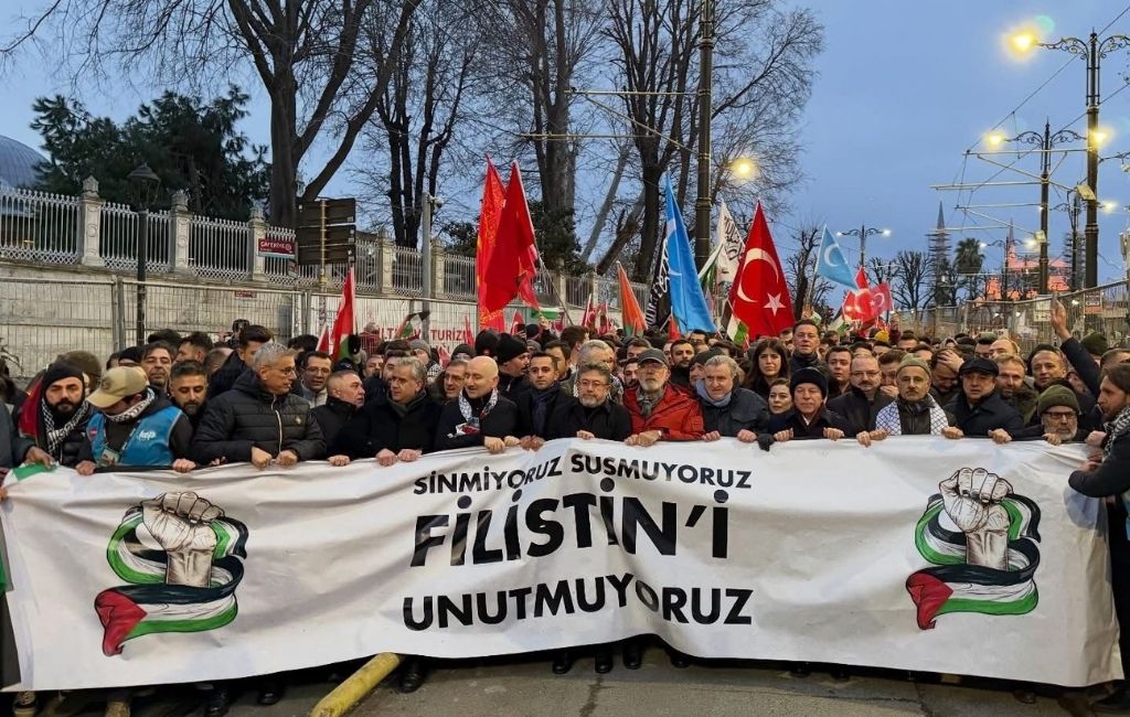 Yaklaşık 520 bin kişinin katıldığı eylemin sloganı, “Sinmiyoruz, susmuyoruz Filistin’i unutmuyoruz” oldu.