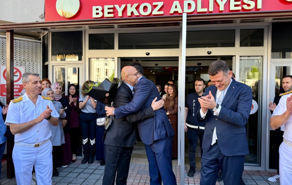 Barış Duman, meslektaşlarının tebrikleri eşliğinde yeni görev yeri olan Beykoz Adliyesi’nden ayrıldı.