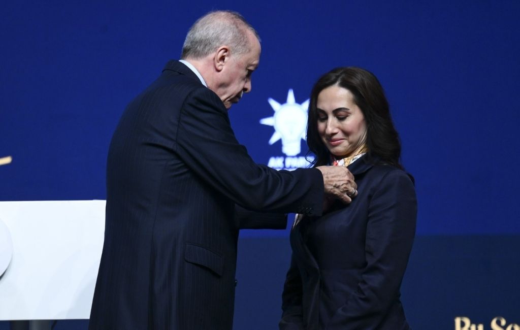 Cumhurbaşkanı Erdoğan’ın, programda AK Parti’ye geçen Beykoz Belediye Başkan Vekili Özlem Vural Gürzel’e rozetini taktı.