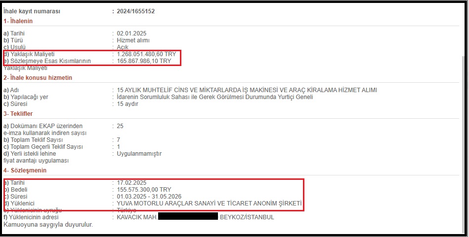 Söz konusu ihale, Beykoz Belediyesi tarihindeki en büyük ihalelerden biri olarak dikkat çekiyor. 277 kalem sürücüsüz iş makinesi ve araç kiralama hizmeti için yapılan bu harcama, tasarruf politikaları ile ne kadar örtüştüğü konusunda soru işaretleri yaratıyor.