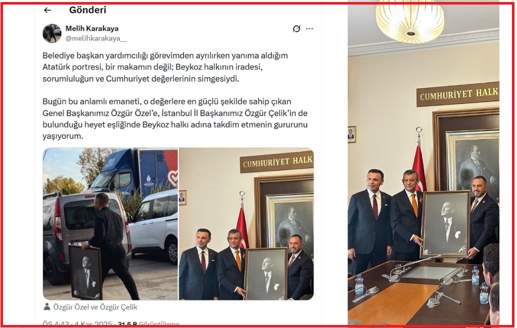 Beykoz Belediye Başkan Vekili Özlem Vural Gürzel’in AK Parti’ye geçmesinin ardından başkan yardımcılığı görevine devam etmeyi düşündüğünü fakat gelecek tepkiler nedeniyle istifa ettiği iddia edilen Melih Karakaya’nın belediyeden ayrılırken elinde taşıdığı Atatürk portresi ile verdiği poz gündem olmuştu.