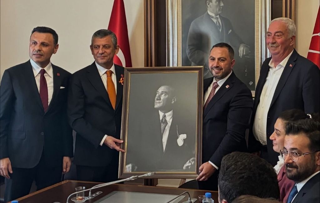 Melih Karakaya, bu kez belediyenin demirbaşı olan, AK Parti döneminde kullanılan Atatürk portresini kendininmiş gibi CHP Genel Başkanı Özgür Özel’e hediye etti.