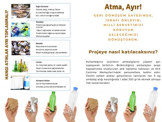 Projeyle vatandaşlar topladıkları kağıt, karton, plastik, metal ve cam kategorisine giren atıklardan ayırdıkları geri dönüşüm malzemeleri karşılığında Halk Ekmek büfelerinden aldıkları ekmeği evlerine götürebilecek.