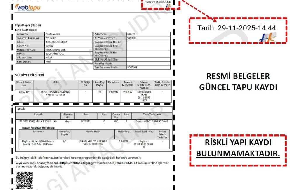 RİSKLİ YAPI KAYDI BULUNMUYOR