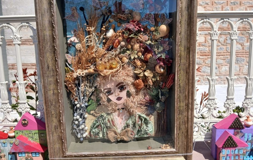 Sergide yer alan cam çerçeveli tablolar ise dikkat çeken çalışmalar arasında yer aldı. Bu eserlerde kullanılan her bir obje; bir boncuk, küçük bir parça ya da eski bir eşya, geçmişten bir anıyı ve yaşamın izlerini temsil ediyor.