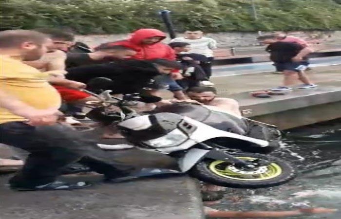 Sürücü ve motosiklet ise kazanın etkisiyle kayarak denize düştü.