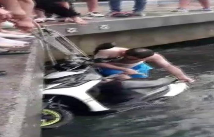 Motosikletin arkasında bulunan yolcu, kaza esnasında kendisini son anda denize düşmekten kurtardı.