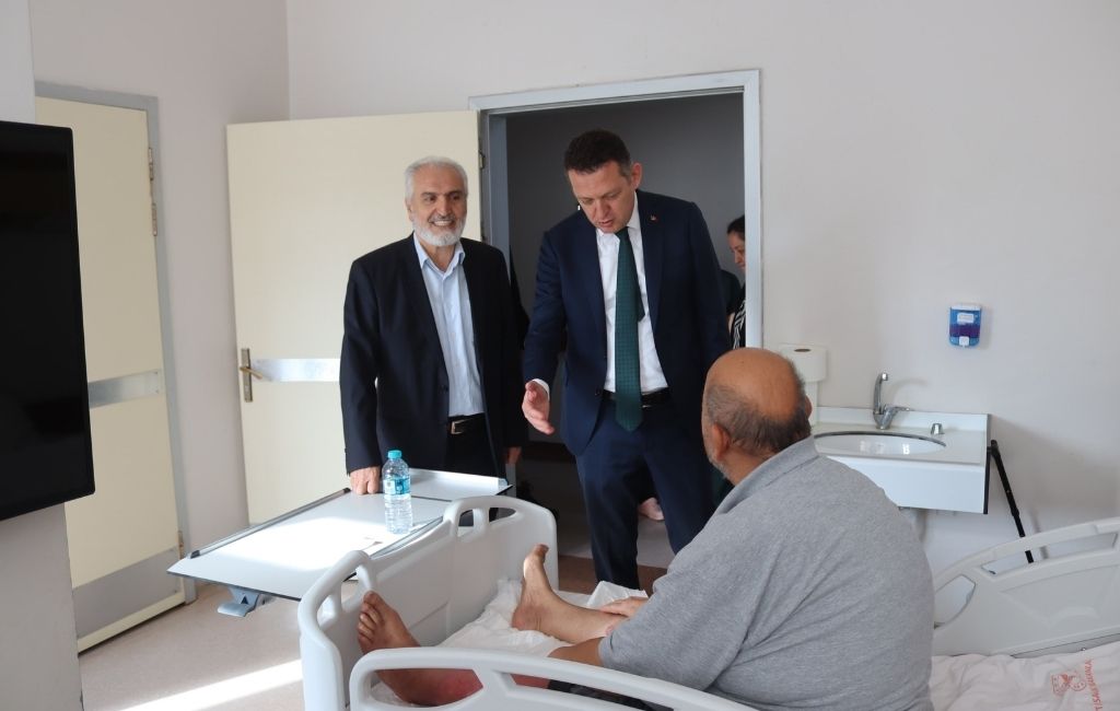 Hastanede tedavi gören vatandaşlarla da yakından ilgilenen Kaymakam Ürkmezer, hastalara geçmiş olsun dileklerini ileterek en kısa sürede sağlıklarına kavuşmaları temennisinde bulundu.
