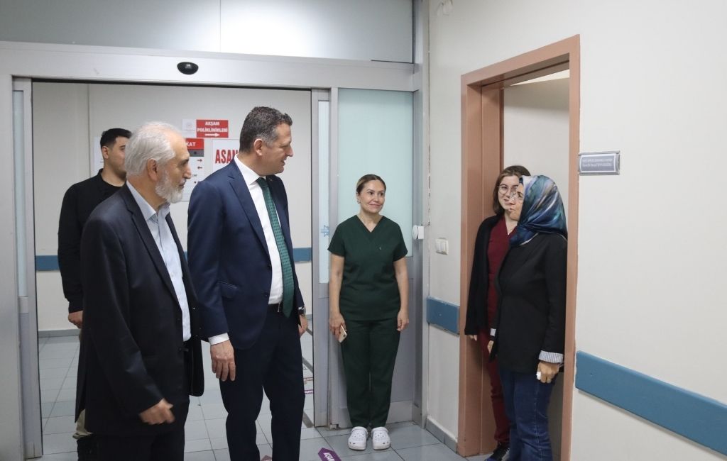 Hastanenin acil servisi, poliklinikler ve yataklı servisler başta olmak üzere farklı birimlerde incelemelerde bulunan Kaymakam Ürkmezer, hastane yönetiminden hizmetlerin işleyişi, hasta kabul süreçleri, altyapı ve personel durumu hakkında detaylı bilgi aldı.