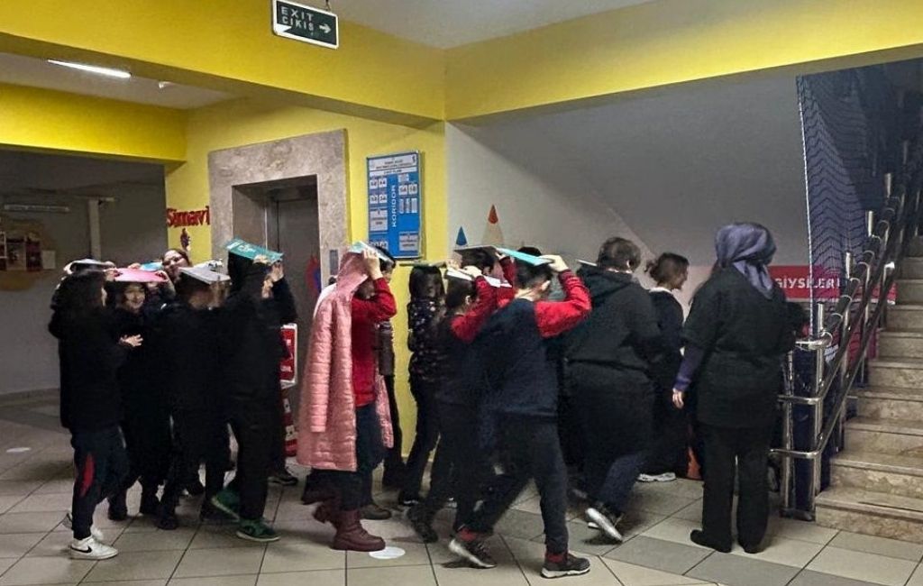 Deprem farkındalığını artırmak ve afetlere karşı bilinç oluşturmak amacıyla yapılan tatbikatlarda, öğrencilere deprem sırasında nasıl hareket etmeleri gerektiği uygulamalı olarak gösterildi.