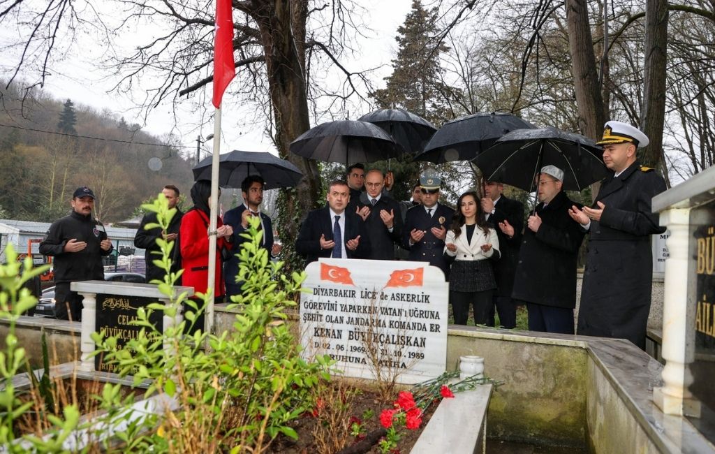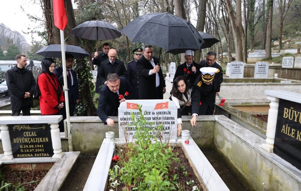 Daha sonra Şehit Hüseyin Tosun ve Kenan Büyükçalışkan mezarları başında anıldı. Şehitlik ziyaretinde, protokol üyeleri tarafından kabirlere karanfiller bırakıldı.