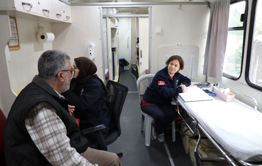 Sosyal Hizmetler Müdürlüğü ekipleri ihtiyaç sahibi vatandaşlara yönelik saha tespit ve destek çalışmalarını yürütürken, sağlık otobüsü de mahallede konumlandırılarak vatandaşlara yerinde sağlık hizmeti sundu.