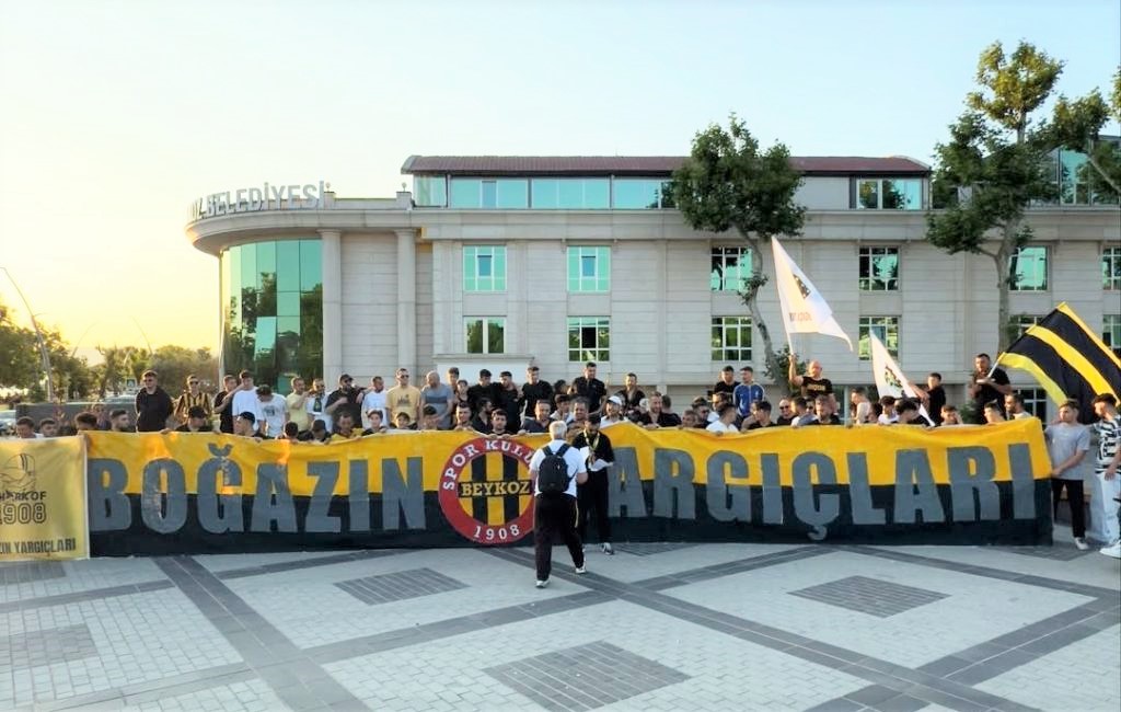 Beykoz Meydan’dan sloganlarla Beykoz Belediye Önü’ne yürüyen taraftar grubu, Beykoz 1908 A.Ş. ile Beykoz Anadolu A.Ş. kulüplerinin birleşmemesi ve kulübün geçtiğimiz sezon maçlarını başka ilçede oynaması nedeniyle yönetimi eleştirdi.