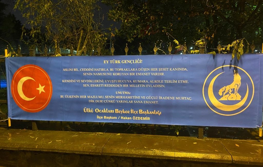 Beykoz Ülkü Ocakları Hakan Özdemir ve beraberindekiler, ilçenin dört bir yanını pankartla donatarak vatandaşları uyuşturucu, kumar ve alkol bağımlılığına yönelik uyardı.