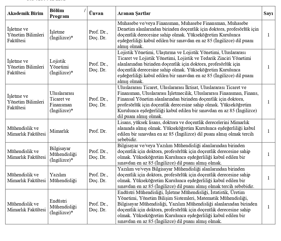 ÖĞRETİM ÜYESİ KADROLARINA BAŞVURU ŞARTLARI