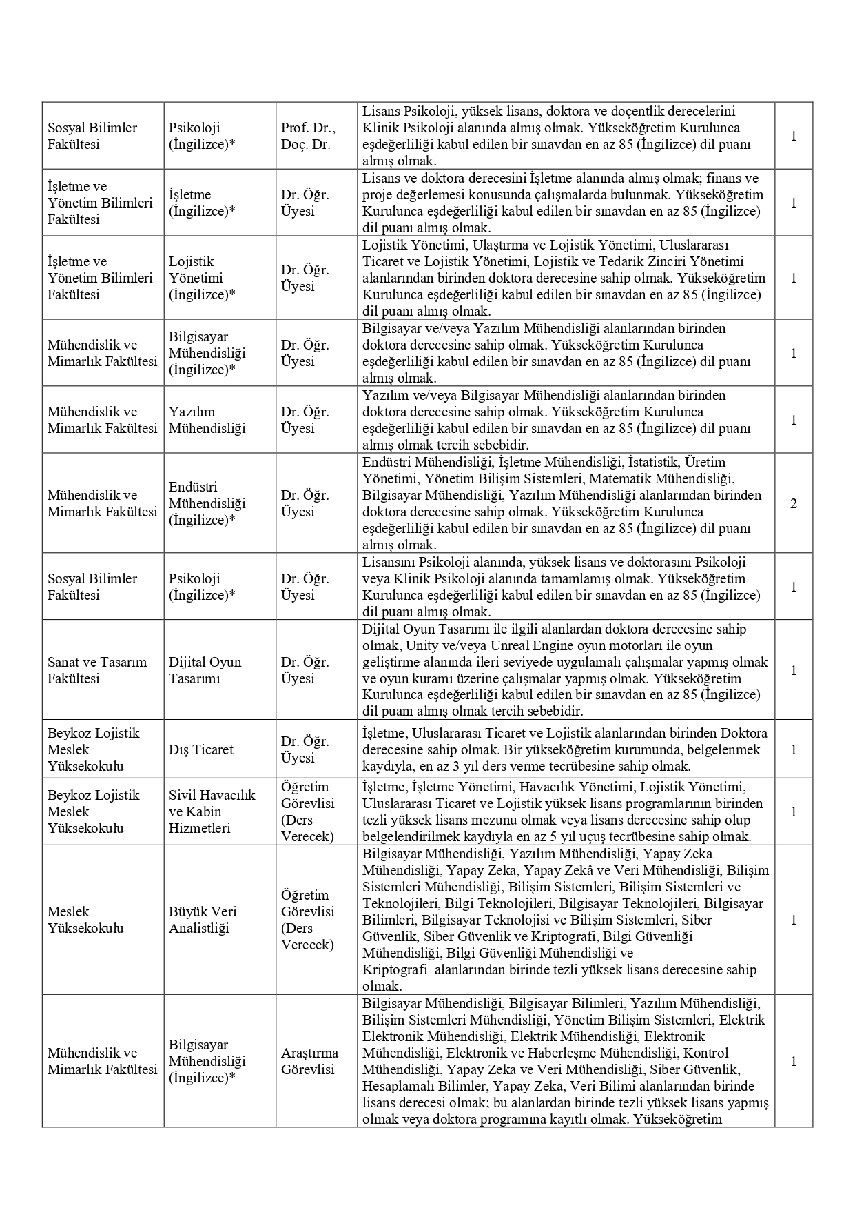 Başvurular için gerekli bilgi, belge ve başvuru şartlarına ayrıca www.ilan.gov.tr insan kaynakları kategorisinden veya www.beykoz.edu.tr adresinden ulaşılabilir.