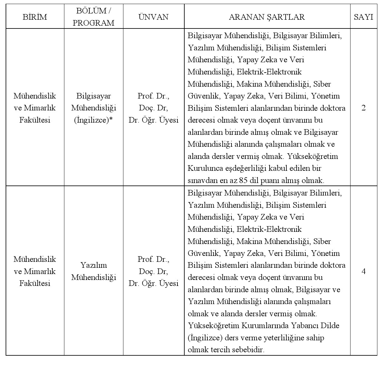 6. Öğretim görevlisi kadrosuna başvuracak adaylarda en az tezli yüksek lisans derecesine sahip olmak şartı aranır.