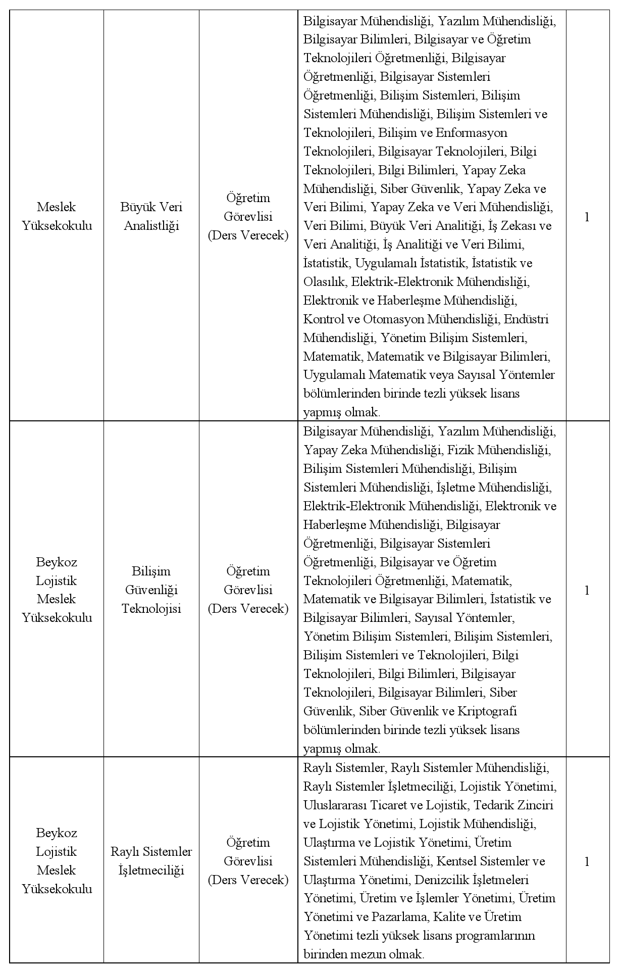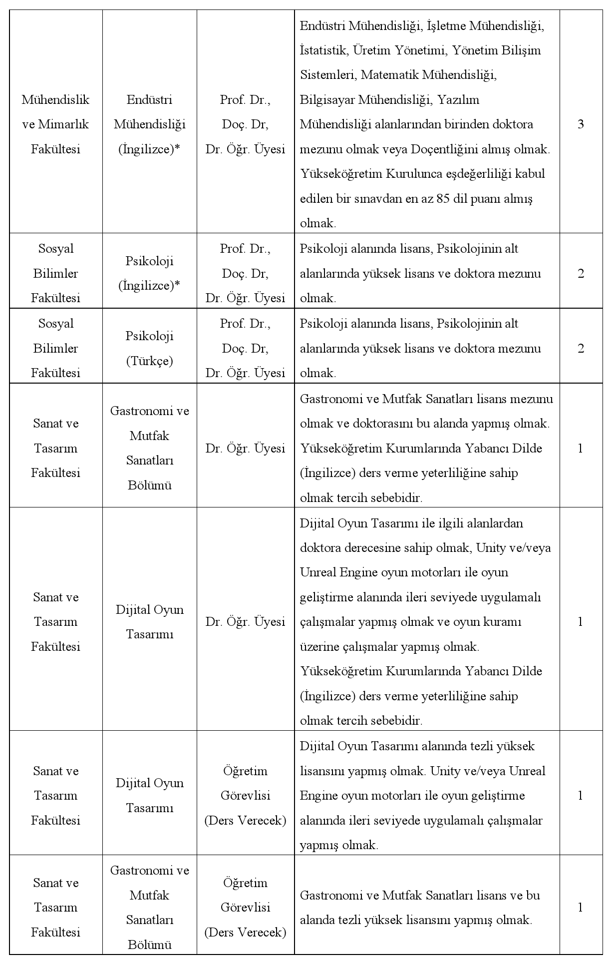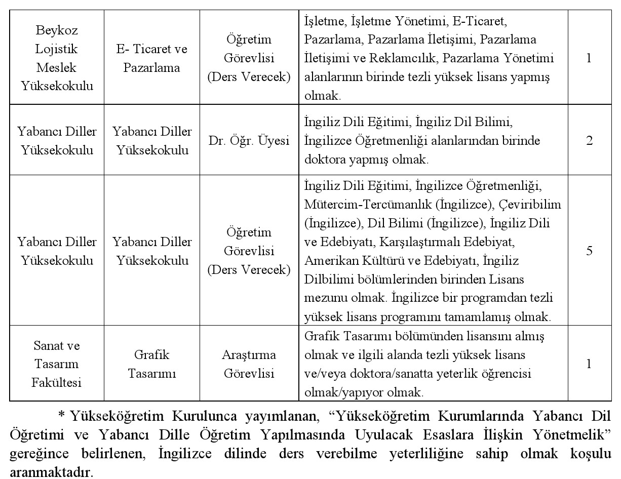 Beykoz Üniversitesi Rektörlüğü’nden yapılan açıklamaya göre bünyesinde yer alan çeşitli bölümlere 29 öğretim elemanı alınacak.