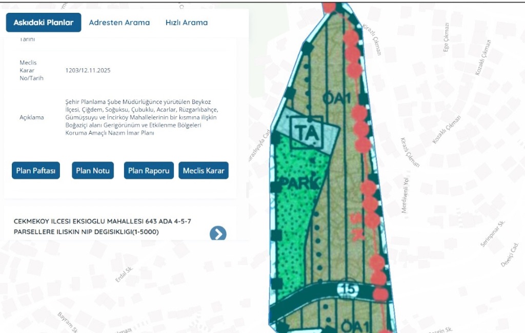 İlçede 7 mahallenin merakla beklediği planlara yapılan itirazlar değerlendirildi ve yeniden askıya çıktı. Böylelikle, Çiğdem, Soğuksu, Çubuklu, Acarlar, Rüzgarlıbahçe, Gümüşsuyu ve İncirköy Mahallesi’nin bir kısmını kapsayan alanda askıya çıkan planlara itiraz süreci başladı.
