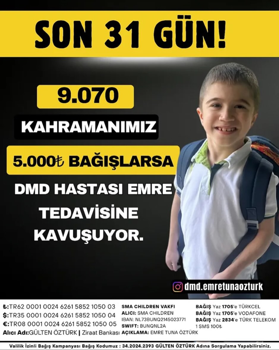 Yakın zamana kadar tedavisi olmayan ancak ABD’de uygulanmaya başlanan yöntemle hastaların sağlığına kavuşması, Emre için de umut oldu. Ailesi, tedavi masrafı olan 105 milyon 500 bin TL’yi toplamak için yardım kampanyası başlattı.