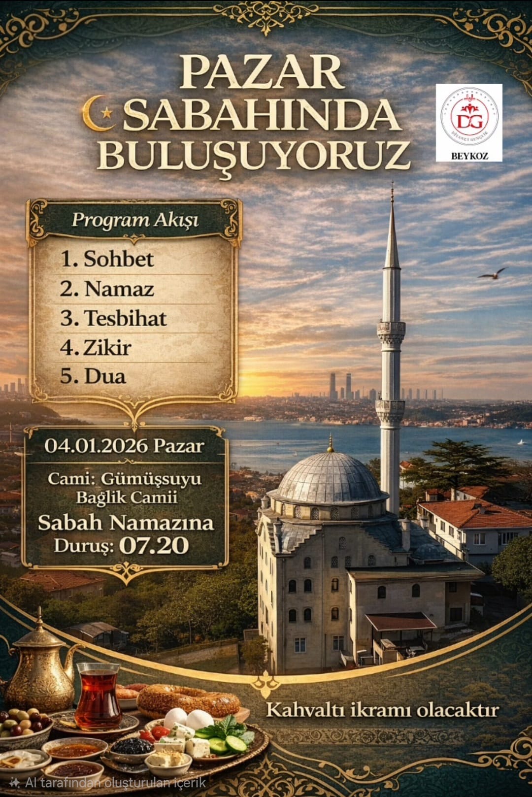İlçe Gençlik Koordinatörlüğü, tüm Beykoz halkını Pazar sabahını manevi bir atmosferde geçirmek üzere camiiye davet etti.