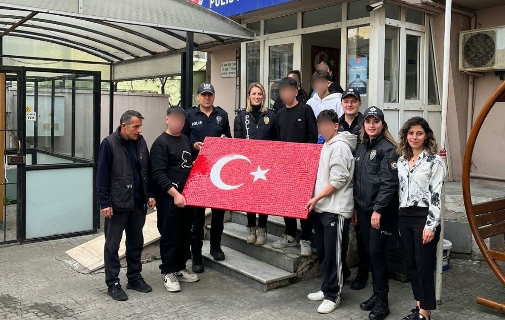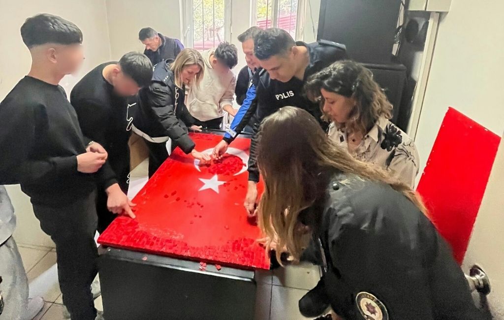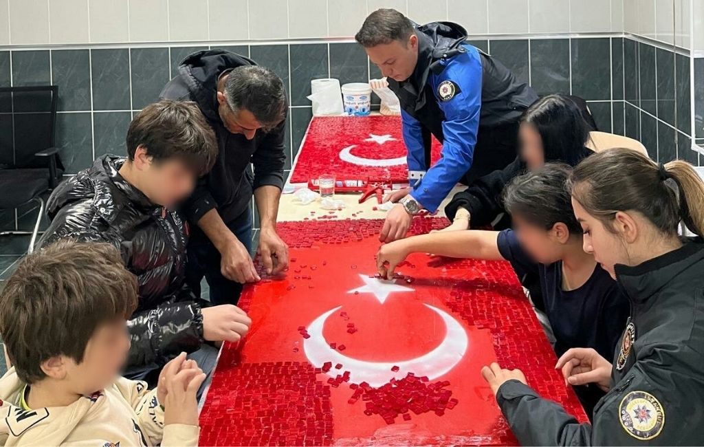 Beykoz İlçe Emniyet Müdürlüğü ile Polonezköy Cam Sanat Merkezi iş birliğinde hayata geçirilen etkinlikte, Polonezköy Cam Sanat Mozaik Atölyesi eğitimcileri tarafından çocuklara cam mozaik teknikleri öğretilerek Türk bayrağı tasarımları yaptırıldı.