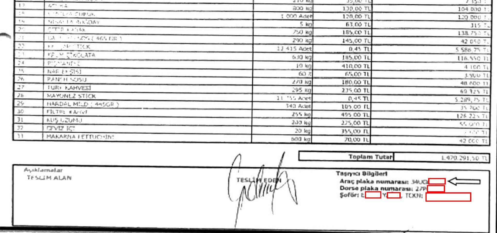 İhalelerden biri de, Mali Gıda isimli şirketten Beykoz Belediyesi İktisadi ve Sosyal Tesis İşletmesi için yapılan gıda alımıydı. Yaş sebze ve meyvelerin de içerisinde olduğu toplam 1 milyon 470 bin 291 TL’lik malzeme faturalara göre 17 Aralık 2024 günü saat 09.30’da 34 UG 6784 plakalı çekici ile taşınmış ve belediyeye teslim edilmişti.