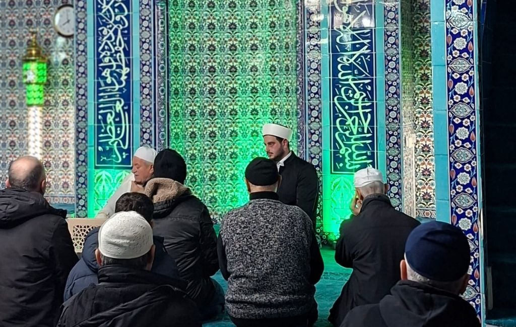 Berat Gecesi’nin manevî iklimine uygun olarak hazırlanacak program, Kur’ân-ı Kerîm tilavetiyle başladı. Akabinde, Yâsîn-i Şerîf okunması, ilahiler, sohbet ile devam etti. Cemaatle kılınan yatsı namazından sonra okunan âyetler, yapılan zikir ve dualarla gönüller huzur buldu.