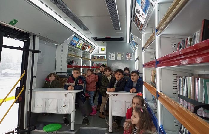 Halkın kitap ile kolaylıkla buluşmasını sağlayan Gezici Kütüphane sayesinde minikler içerisinde yüzlerce nitelikli kitap, satranç gibi oyunlarla vakit geçirerek akranlarıyla birlikte sevdikleri kitapları okuma fırsatı buluyor.