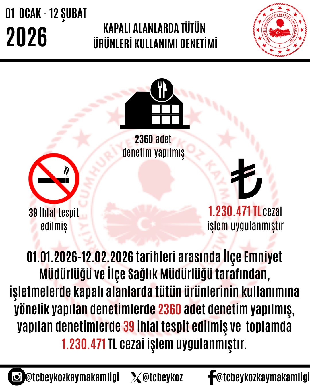 Yetkililer, vatandaşların sağlığını korumak ve dumansız hava sahasını güçlendirmek amacıyla denetimlerin aralıksız devam edeceğini vurgulayarak kapalı alanlarda tütün ürünü kullanılmaması konusunda uyarıda bulundu.