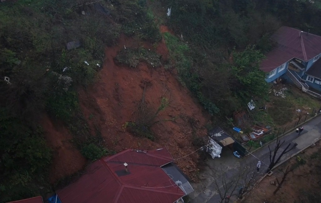 Mahalledeki kişilerin panik yaşadığı olayda yaralanan kimsenin olmadığı belirlendi. Olay yerindeki inceleme çalışmaları sürüyor. Toprak kaymasının meydana geldiği alan ise dronla havadan görüntülendi.