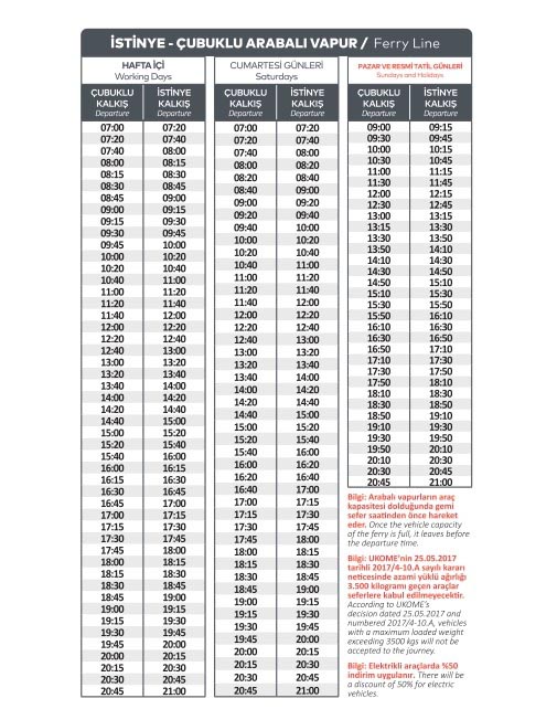 2022-2023 Kış Tarifesi’ne göre yeni vapur saatleri: