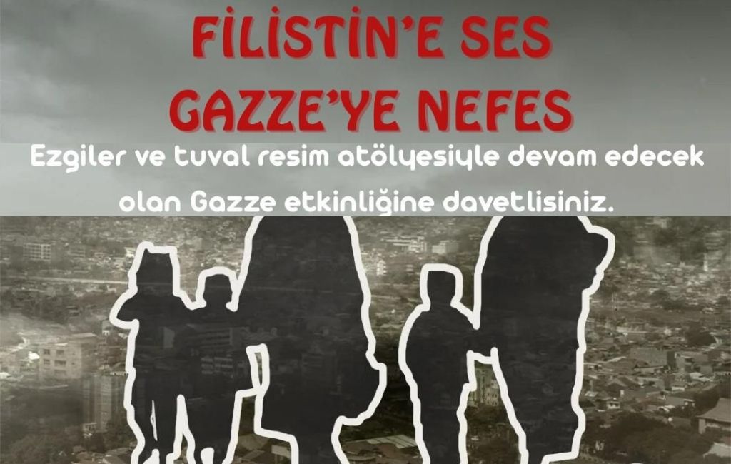 Ezgi sanatçısı Hayrettin Akkuş’un sahne alacağı programda, duygulara tercüman olacak ezgilerle Filistin halkının sesi duyurulacak. Etkinlik kapsamında ayrıca tuval resim atölyesi düzenlenecek; katılımcılar sanat yoluyla Gazze’ye destek olacak.