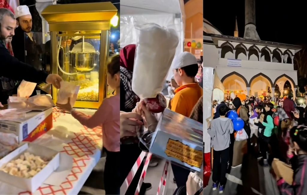 Namaz sonrası ise balon yağmuru, havai fişek gösterisi, pamuk şeker, patlamış mısır, elma şeker ve çeşitli hediyeleri dağıtıldı.