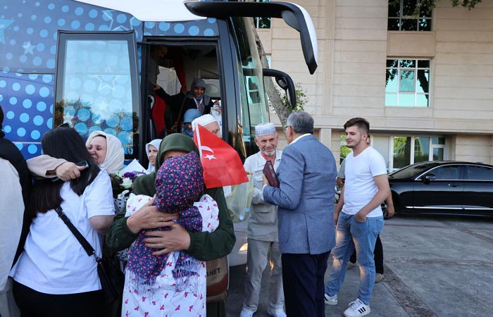 Hacılar ile yakınları uzun süre kucaklaşıp hasret giderdi. Duygusal anların yaşandığı buluşmada hacılar ve aileleri gözyaşlarına hâkim olamadı. Hacıların yanlarında ikram edilmek üzere zemzem suyu ve hurmanın yanı sıra çeşitli hediyelik eşyalar getirdiği görüldü.