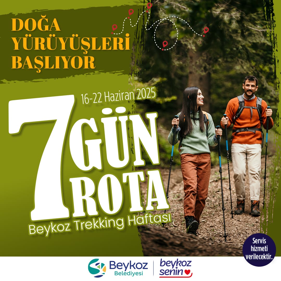16-22 Temmuz tarihleri arasında gerçekleşecek olan Beykoz Trekking Haftası kapsamında, Beykozlular, yedi günde yedi doğa yolculuğu yapacak. “7 Gün 7 Rota” başlığıyla planlanan yolculuklar hem Beykoz’un ve İstanbul’un doğal güzelliklerini hem de İstanbul dışındaki rotaları kapsıyor.
