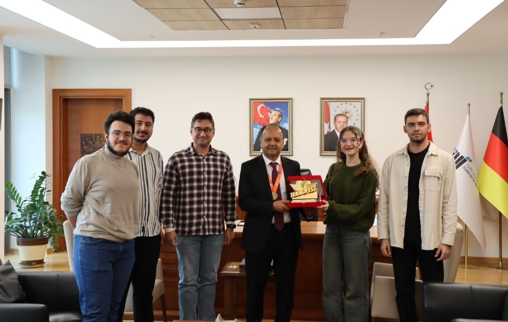Ziyarette, Rektör Prof. Dr. Cemal Yıldız, takım üyelerini ve danışman öğretim üyesi Dr. Murat Tümer’i tebrik ederek gösterdikleri üstün performanstan dolayı duyduğu memnuniyeti ifade etti.
