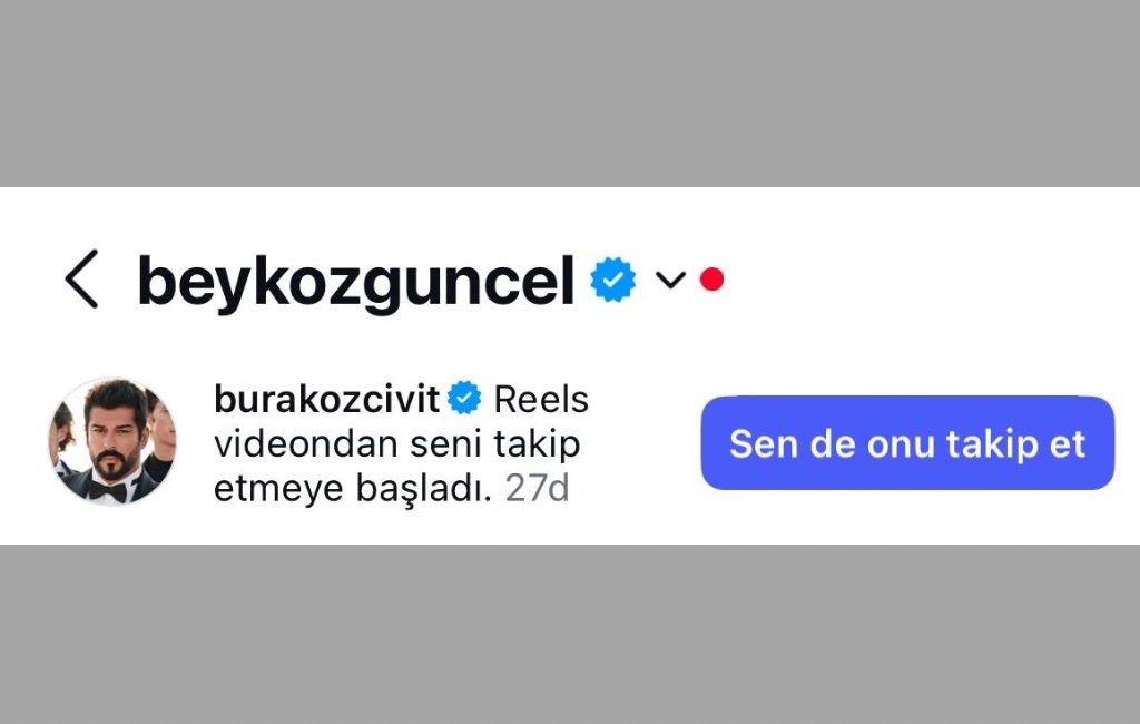 25 milyon takipçisiyle Türkiye’nin en ünlü isimlerinden olan ve Beykoz’da ikamet eden Kuruluş Osman’ın yıldızı Burak Özçivit, 45 bin takipçiyi aşan Instagram hesabımız @beykozguncel’i takip etti.