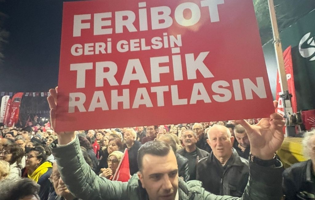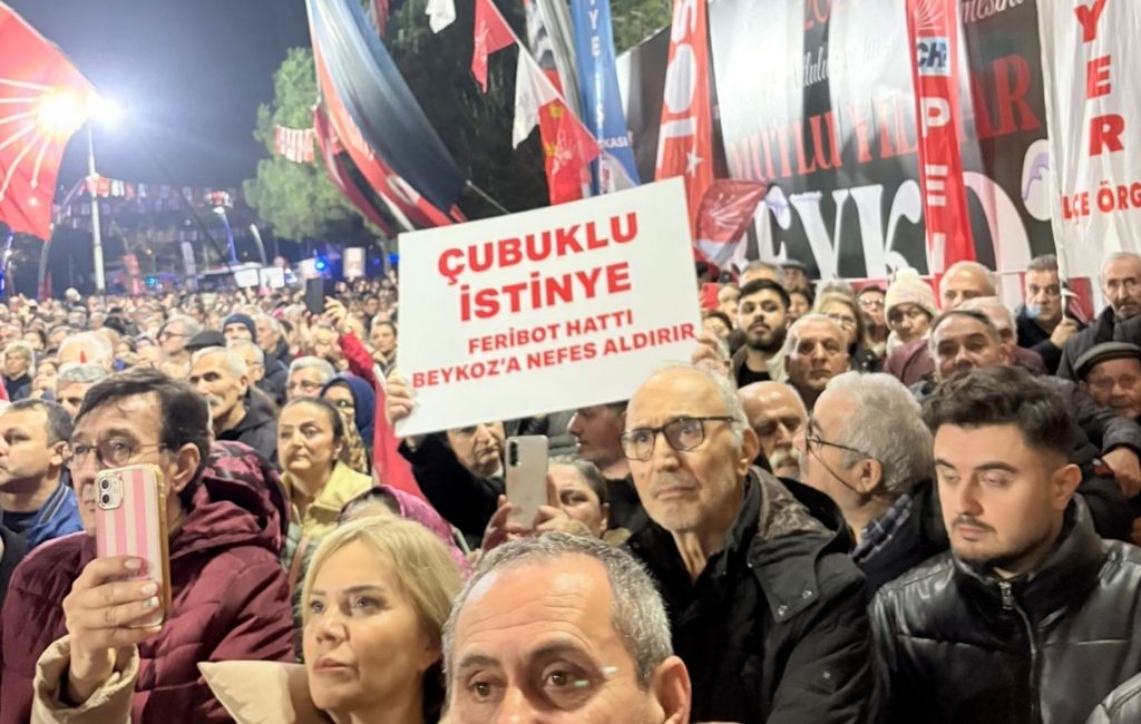 Mitingde, İBB tarafından 31 Temmuz itibarıyla kapatılan İstinye – Çubuklu Arabalı Vapur hattı için açılan dövizler dikkat çekti.