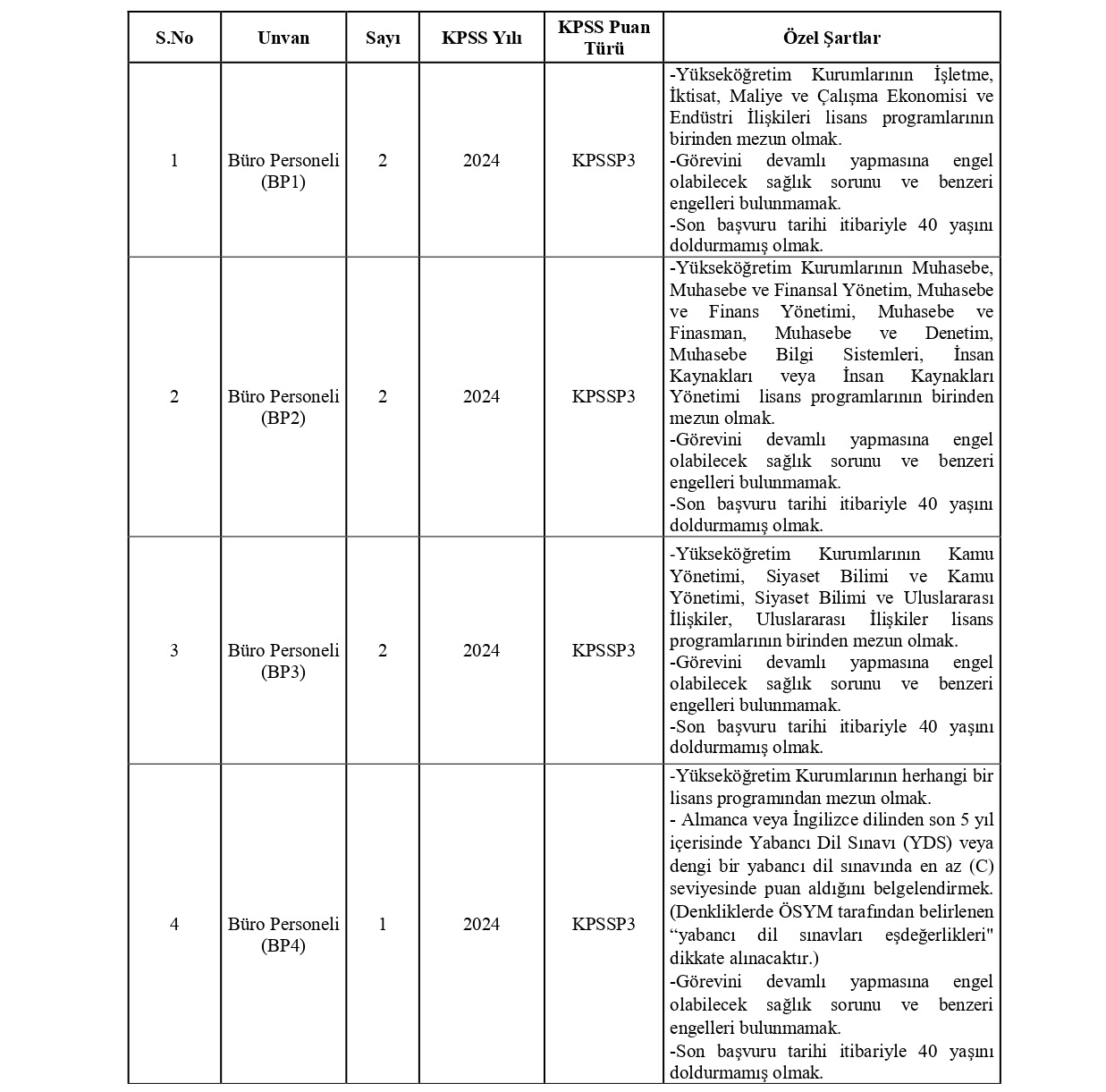 * KPSS’den yüksek puan almak ilanda yer alan sözleşmeli pozisyonuna yerleştirmede tek başına hak kazandırmayacak, pozisyon için belirtilen genel ve özel şartlara sahip olmayan adaylar değerlendirmeye alınmayacaktır.